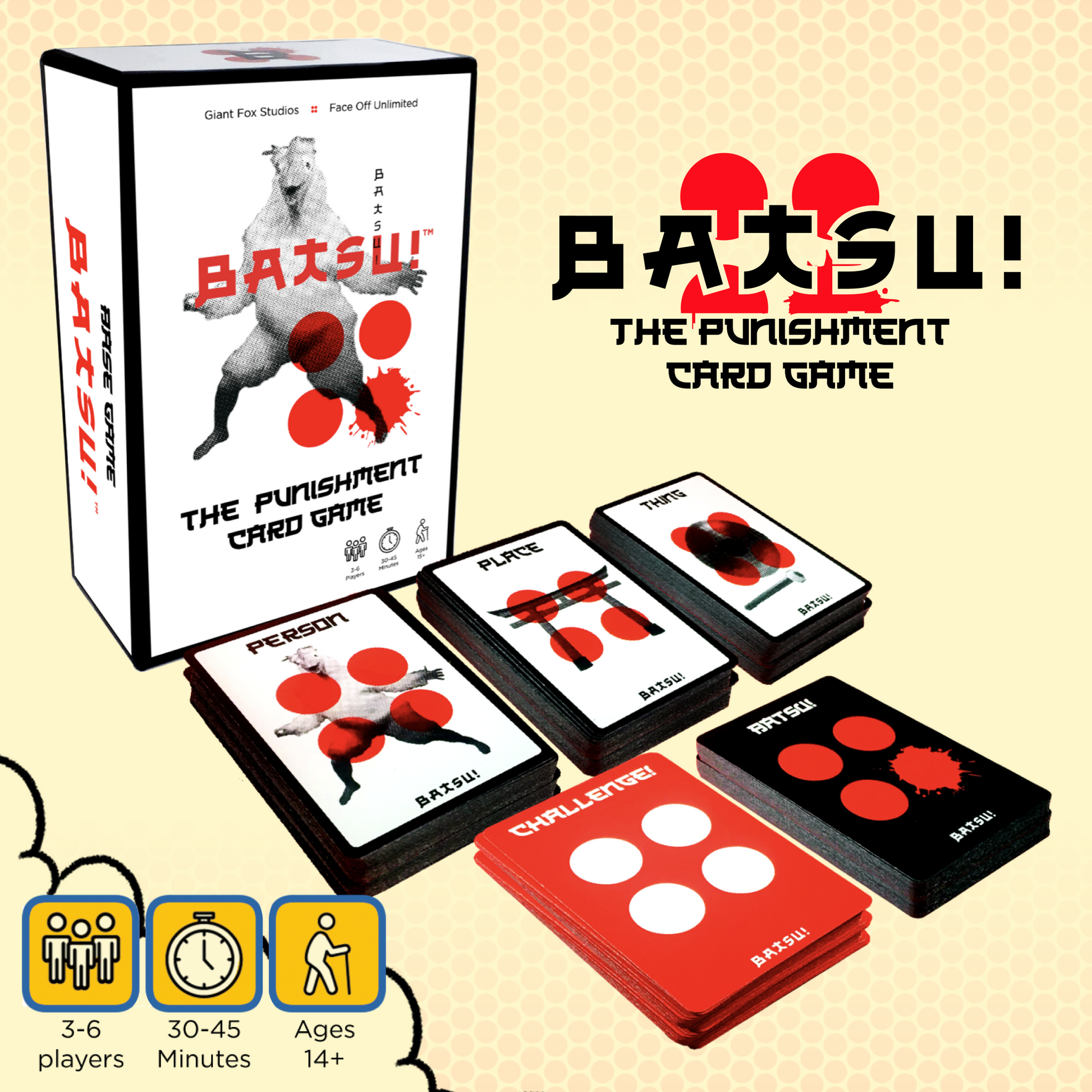 BATSU! is a card game anyone can play from young to old. Depending on friends, the punishments can be harmless to as extreme as you guests are comfortable with. Rules are easy, and it's easy to pick up and have lots of dumb fun!