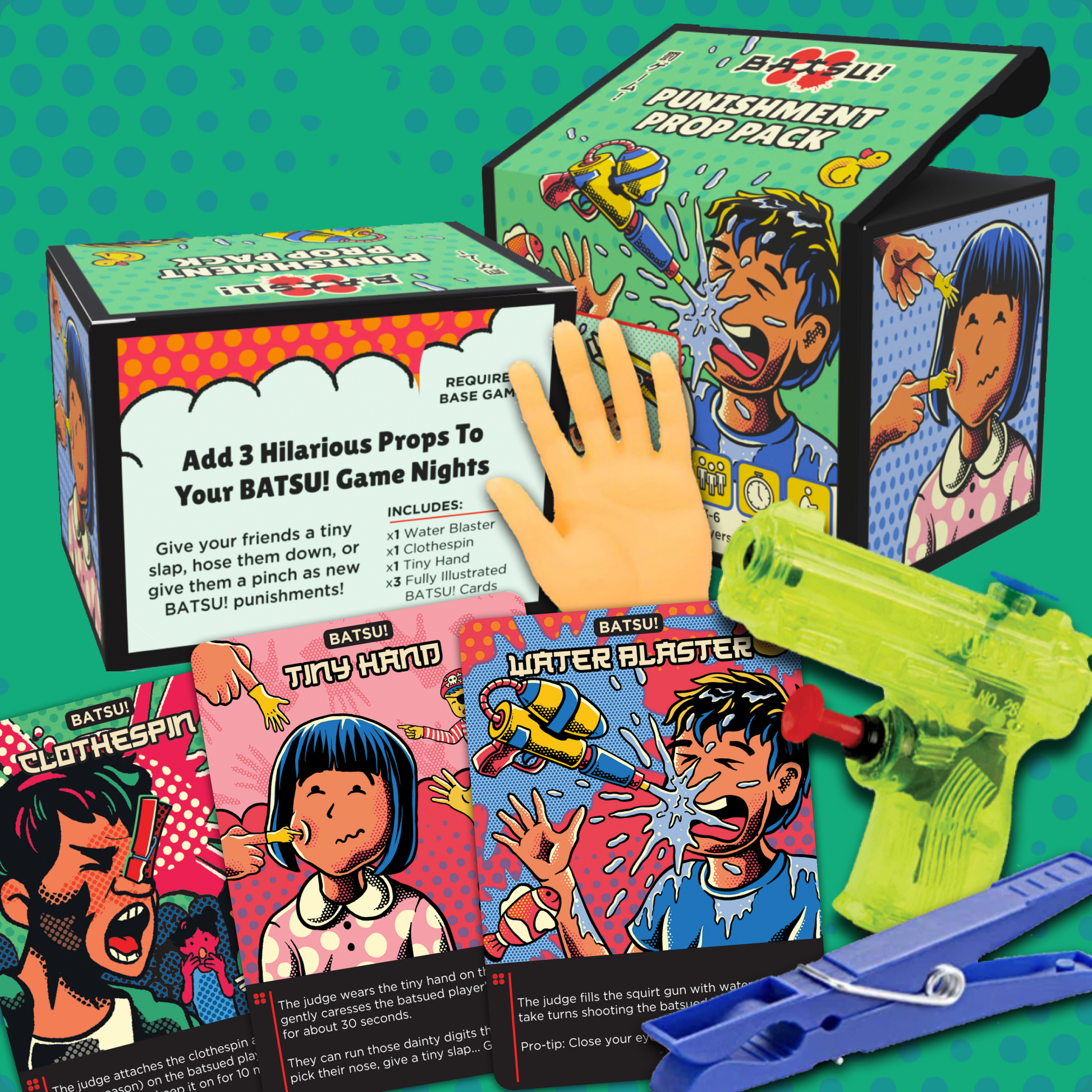 Pinch, squirt, and tiny-slap your way to laughter with all 3 new punishment props for the price of 2!